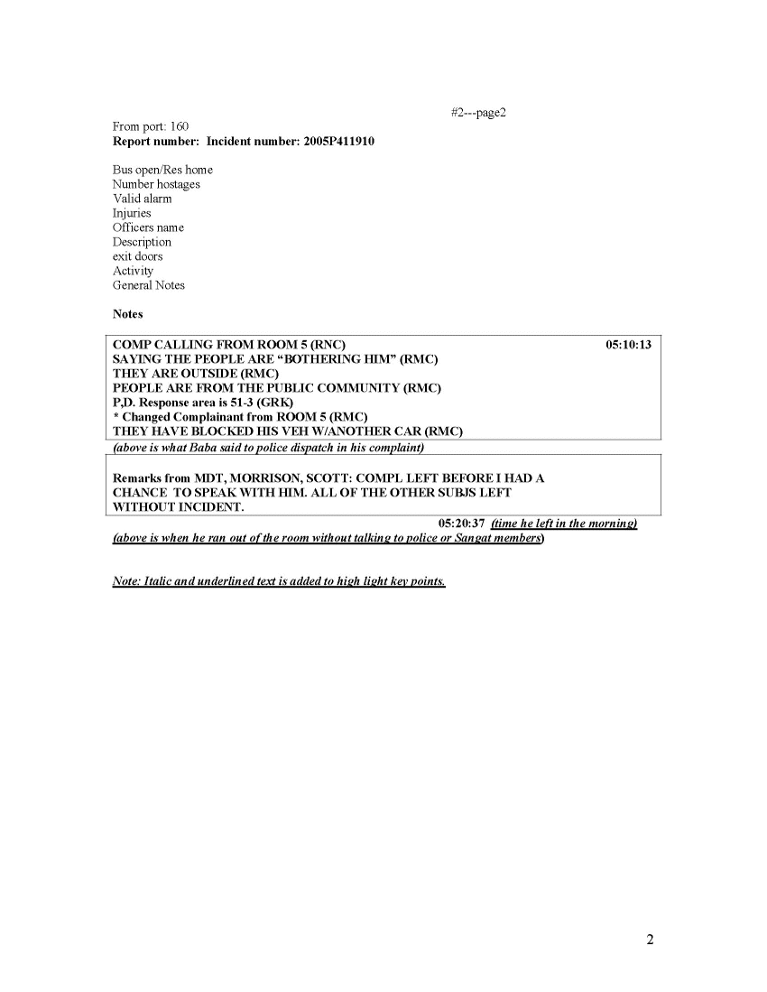 Incident Numbers: 2005P411854, 2005P411865