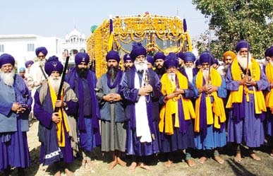 There was so much Sangat that the entire procession of the Nagar Kirtan covered miles. The route of the procession included the towns of Chagran, Bohan, Patti, Bajrawar Chabaywal, and Jatpur. The Sangat was warmly welcomed in every town and showered with flower petels by the local sevadars. The Nihang Singhs, known as Guru-ki-ladli-fauj, displayed their martial skills in Gatka, sword fighting, and horse riding.