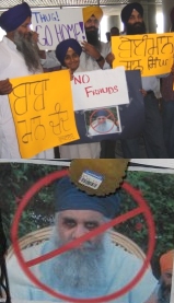 The protest signs displayed such messages as “Bayee-Maan Baba,” “Bheki, Kaami Saadh (Showoff pervert ‘saint’),” “Baba Maan = Rapist Thief, Child Molestor, Hypocrite,” and “Thug! GO HOME!”