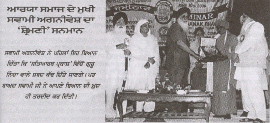 Agnivesh had issued a statement earlier that blasphemous text (which was written against the Sikh Gurus) would be removed from the 'Satyarth Prakash', afterwards the swami declined.