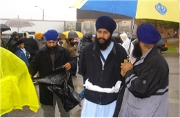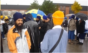 Panthic organizations had anticipated a large protest if the function had taken place. Buses were already hired from various locations to bring the Sikh protestors to the aberrant function. Nevertheless, even after cancellation, and despite the rainy weather, several hundred Gursikhs, old and young, men women and children showed up at the parking lot of Premier Banquet Hall on Sunday, sending a clear message to the Ghagga/Kala-Afghana lackeys that the Sangat stood in support of Sri Akal Takht Sahib and Panthic norms.
