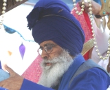 Jathedar Baba Nihal Singh on Guru Granth Sahib Ji's main float during Nagar Kirtan
