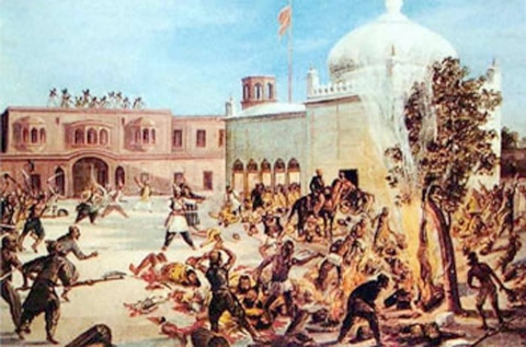 Enthused by the speech of Jathedar Tehal Singh, the entire Shaheedi Jatha followed him. By this time, another horseman messenger, Bhai Ram Singh, arrived. In vain did he too try to persuade Jathedar Tehal Singh and the Jatha to return. The Jatha soon entered Darshni Deohri of the Gurdwara and shut the main door from inside. While some of the devotees took their seats inside the Prakash Asthan, others sat on the platform and the Baran dari. Bhai Lachhman Singh Dharowali sat on Guru’s tabia. Mahant Narayan Das came to know of the situation through the Jaikaras (victory slogans) of the Shaheedi Jatha. At first, he was utterly shocked thinking that the game was over but he soon recovered and ordered his hired gundas to kill all the Sikhs in the Jatha. They fired bullets at the Sangat in Gurdwara hall. Several bullets pierced through Sri Guru Granth Sahib. The hired gundas wielded swords, spears, hatchets and other lethal weapons to mercilessly slaughter the peaceful, unarmed and unprovocative Sikhs within the very premises of the Gurdwara. The dead and dying Singhs were then dragged to a pile of logs which had been collected earlier and consigned to flame. By the time the police and local Sikhs came on the scene, all the dead men had been consumed by the fire. Bhai Lachhman Singh Dharowali who was wounded with a gun shot was tied to a Jand tree and burnt alive. It was a butchery at its worst form.