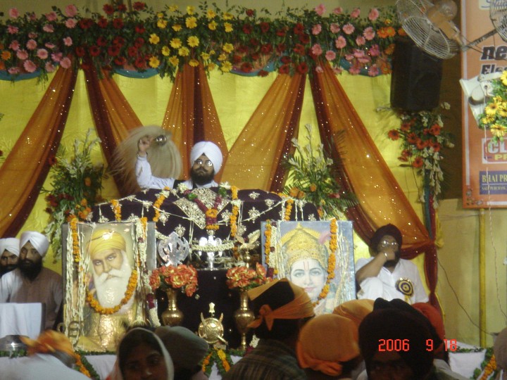 Chaman Lal woshipped by followers along with pictures of Sikh Gurus at Jeejal Ram Temple in Ajadpur, Delhi. Pictures of Chaman Lal performing other manmat infront of Guru Granth Sahib Ji.