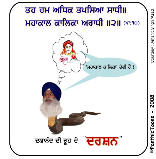 A hundred years ago, Arya Smaj founder, Dya Nand, was claiming that the words 'MahaKal' and 'Kalika' from Dasam Bani were referring only to Hindu deities. Today Dya Nand's spirit, in the form of Ragi Darshan Singh, is parroting the same message. This must make Dya Nand proud !