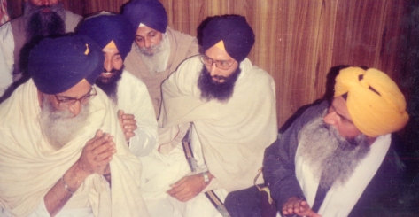 Ragi Darshan Singh with Panthic-Dusht Surjit Barnala and a young Giani Kewal Singh