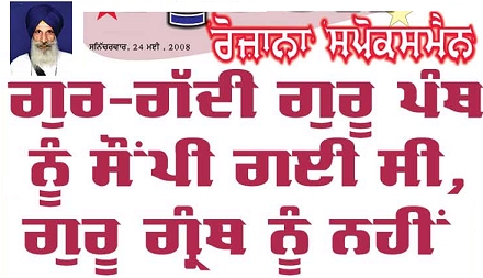 Amritsar Sahib (KP) - Following a chain of blasphemous attacks by Rozana Spokesman, another article was published by the newspaper trying to belittle the status of Guru Granth Sahib Ji. The attacks by Rozana Spokesman have continued to appear in the media during the 300th Anniversary of Guru Granth Sahib Ji's Gurgaddi that is being celebrated all around the world.