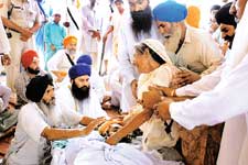 According to eyewitnesses, a local 'naam-charcha' (Sirsa cult meeting) was being organized at the residence of Sundar Dass Mehta on Friday. Volunteers of the Sri Guru Granth Sahib Satkar Sabha, including Bhai Harmandir Singh, complained to the local police officials about the meeting, but officials, who themselves sympathize with the cultists, turned a blind eye to the issue.