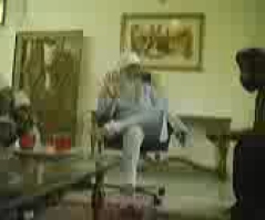 Baba Jaspal Sitting on a chair with a special pedestal to rest his feet.