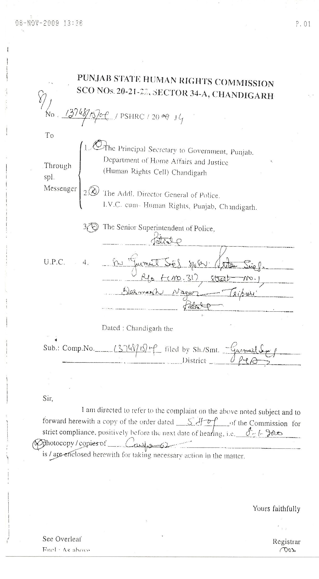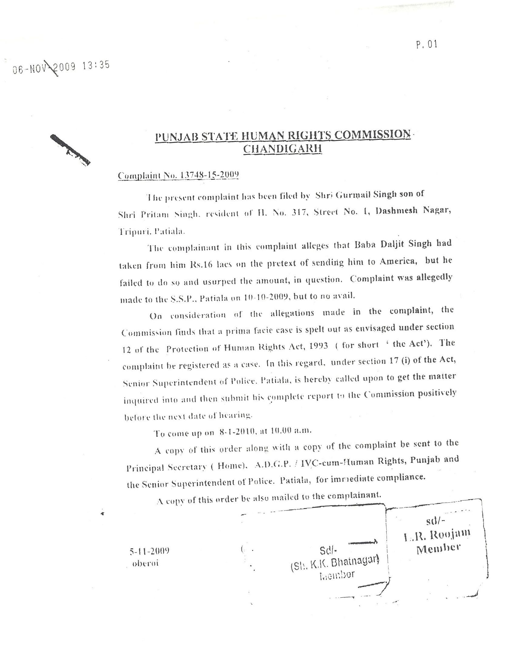 Petition & Report from Punjab's Human Rights Commision