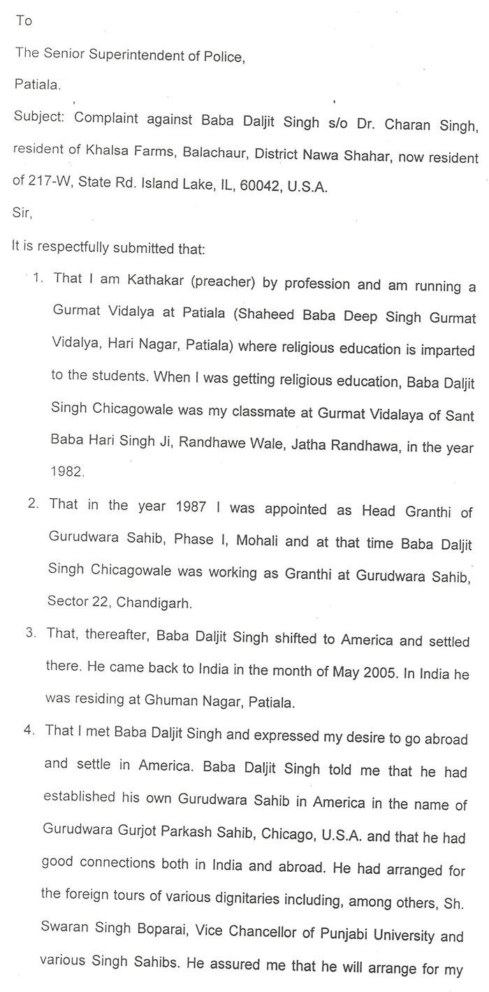 Singh ji- this Baba used to stay at Gurmail Singh's house when he visited india and they were close. You must understand that Gurmail Singh isn't extremely educated, he studied at a Gurmat Vidyala with the Baba. Chicago Baba said it would cost 16lakh to get him to America and he said okay and gave it to him. Now this Baba has swindled his money. The worst thing is that the Jathedars visit his dera. He has been caught in a motel with a women and now this? And they still support him? The Gianis at his gurdwara drink and smoke. I have seen Harjant Singh (Granthi) smoking cigarettes in the gurdwara parking lot.