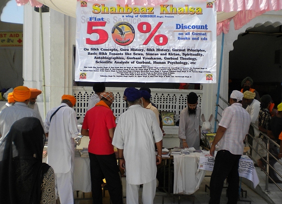 ਤਖਤ ਸ੍ਰੀ ਹਜ਼ੂਰ ਸਾਹਿਬ ਵਿਖੇ ਸ਼ਾਹਬਾਜ਼ ਖਾਲਸਾ ਸੰਸਥਾ ਵਲੋਂ ਸ੍ਰੀ ਦਸਮ ਗ੍ਰੰਥ ਅਤੇ ਗੁਰਮਤਿ ਸਬੰਧੀ ਪੁਸਤਕਾਂ, CD, VCD ਦੇ ਭੰਡਾਰ ਦਾ ਦ੍ਰਿਸ਼: