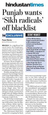New Delhi - The Hindustan Times Sunday recently published a report stating that the SAD-BJP led Punjab government sent a secret communication to central government requesting the deletion of various blacklisted Sikh activists.
