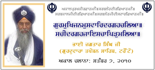 TORONTO, CANADA - Bhai Jagtar Singh Ji of Gurdwara Tapoban Singh, Toronto, passed away on September 7th, 2010 in the highest of spirits and completed his spiritual and physical journey on Earth.