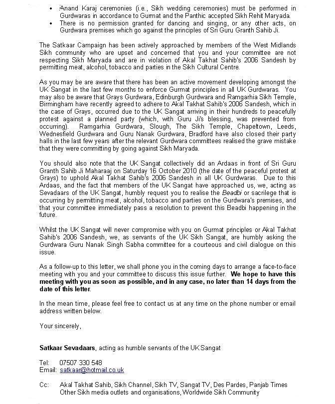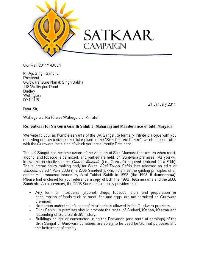 For several months, the UK’s Satkaar Campaign and other Sikh community leaders have been in discussions with the Gurdwara Management Committee to persuade them adhere to Sikh Maryada and the 2006 Sandesh issued by Akal Takhat Sahib. The history of this entire episode can be read on the Satkaar Campaign blog.