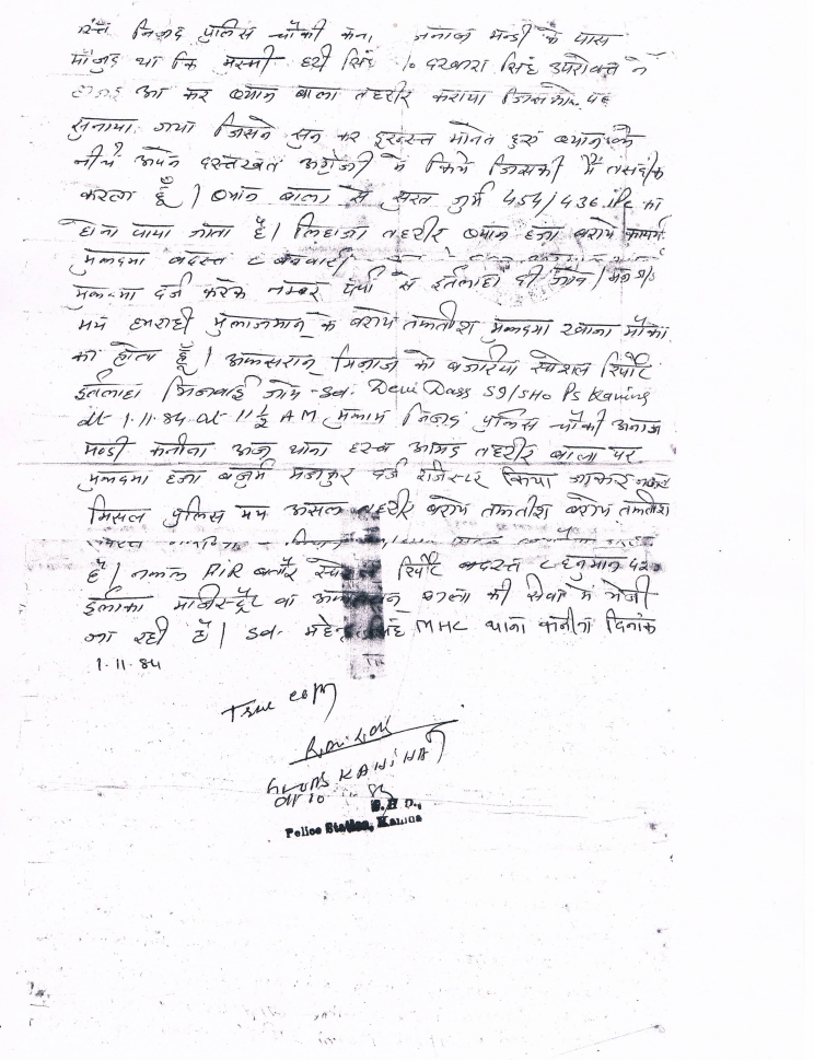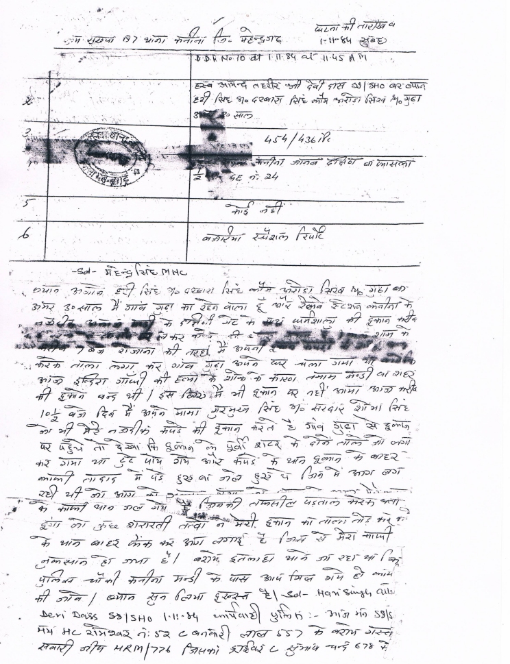The only FIR’s registered during November 1984 at Police Station Kanina was never investigated and the crime of attempt to wipeout the entire Sikh population of Village Gudha has never even been investigated by the Government of Haryana in the last twenty eight years. Since March 2011, Justice TP Garg has been heading a one man commission to investigate the killing of Sikhs in Hondh-Chillar, Pataudi and Gurgaon.