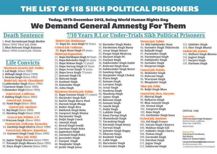 On this occasion, human rights advocate Jaspal Singh Manjhpur released a tentative list of 118 Sikh political prisoners who are currently languishing in the Indian prison system.