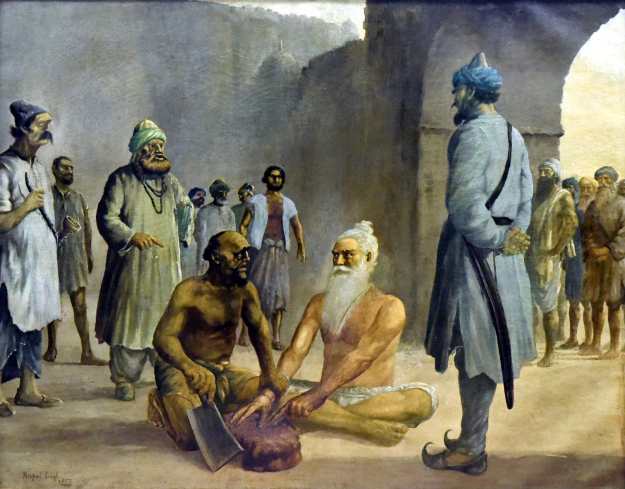 ਨੇ ਤੇਗ ਵੀ ਵਾਹੀ ਅਤੇ ਫਿਰ ਆਪਣੀਆਂ ਉਗਲਾਂ ਦੇ ਪੋਟੇ-ਪੋਟੇ ਨੂੰ ਕਟਵਾਇਆ। ਚਿੱਤਰਕਾਰ