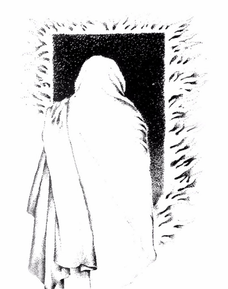 ਆਮ ਤੌਰ 'ਤੇ ਮਨੁੱਖ ਦਾ ਸਰੀਰ ਅਤੇ ਉਸ ਦੇ ਹਾਵ-ਭਾਵ ਦੁਖ ਸੁਖ ਵੇਲੇ ਹਰਕਤ ਵਿੱਚ ਆ ਜਾਂਦੇ ਹਨ, ਪਰ ਇੱਥੋ ਏਦਾਂ ਨਹੀਂ ਹੋ ਰਿਹਾ। ਲੱਗਦਾ ਅਚਾਨਕ, ਅਣਕਿਆਸੀ ਆਉਣ ਵਾਲੀ ਹਿੰਸਾ ਨੇ ਵਿਅਕਤੀ ਨੂੰ ਪਥਰਾਅ ਦਿੱਤਾ। ਆਕਾਰ ਦਾ ਇੱਕ ਹੋਰ ਲੱਛਣ ਪ੍ਰਗਟ ਹੁੰਦਾ ਹੈ। ਉਸ ਦਾ ਸਿਰ ਅੱਗੇ ਨੂੰ ਝੁਕਿਆ ਹੋਇਆ ਹੈ ਅਤੇ ਬਹੁਪਰਤੀ, ਬਹੁਦਿਸ਼ਾਵੀ ਹਿੰਸਾ ਨੇ ਉਸ ਦਾ ਸਰੀਰ ਨਿੱਸਲ ਕਰ ਦਿੱਤਾ ਹੈ, ਭਾਵੇਂ ਚਾਦਰ ਦੀ ਬੁੱਕਲ ਕਾਫ਼ੀ ਕੁਝ ਲੁਕਾ ਲੈਂਦੀ ਹੈ।